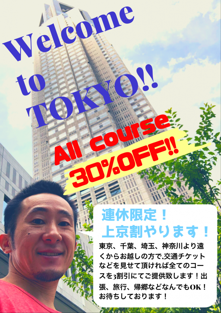 連休3日間限定ですがサマーキャンペーンでもやりました上京割やっちゃいます!日曜日と月曜日はまだ余裕がありますので、是非この機会にロクのグイ揉みオイルやちょいエロ😚タイ古式をお試しくださいませ‼️ご来店、もしくは出張のご利用お待ちしております😁